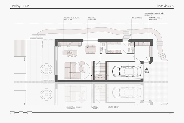 Jednotka A představuje ideální volbu pro ty, kteří si chtějí nové bydlení dokončit přesně podle vlastních představ. Dům nabízí dispozici 5+kk, obytnou plochu přes 190 m², samostatný vstup a vlastní garáž.