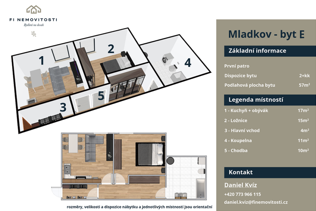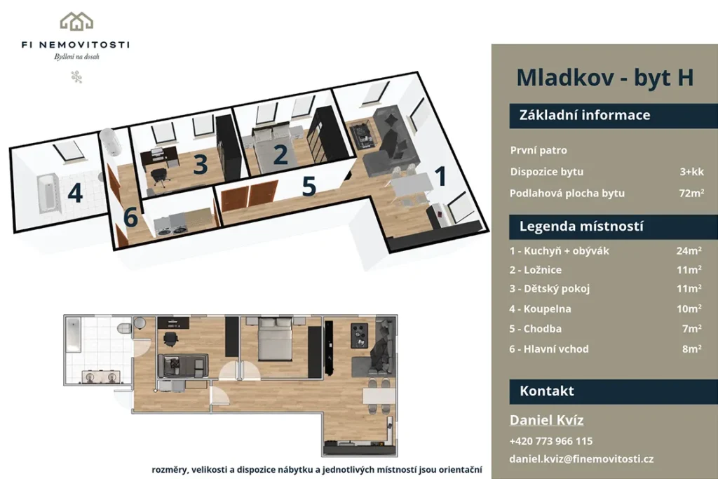 V klidném městysi Mladkov, v okrese Ústí nad Orlicí, vzniká moderní bytový dům s celkem 9 bytovými jednotkami, který nabízí nové bydlení v atraktivní lokalitě Orlických hor. Projekt je ideální volbou pro ty, kteří hledají klidné místo pro život, rekreaci nebo dlouhodobě hodnotnou investici. Mladkov si získává oblibu především díky jedinečnému spojení krásné přírody, komorní atmosféry a dobré dostupnosti. Žamberk je vzdálený přibližně 14 km, v dosahu jsou také Králíky, Letohrad i státní hranice s Polskem. Obcí prochází železniční trať i hlavní silniční spojení, což zajišťuje pohodlné dopravní napojení, aniž by byla narušena klidná atmosféra místa.