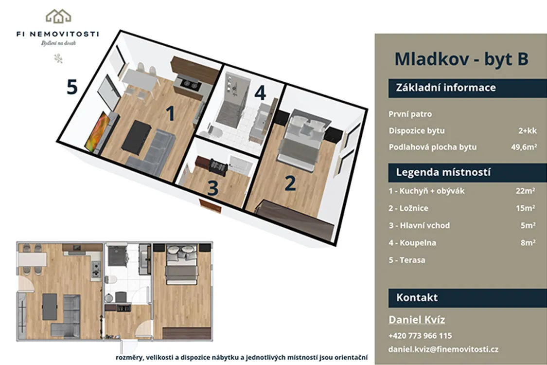 V klidném městysi Mladkov, v okrese Ústí nad Orlicí, vzniká moderní bytový dům s celkem 9 bytovými jednotkami, který nabízí nové bydlení v atraktivní lokalitě Orlických hor. Projekt je ideální volbou pro ty, kteří hledají klidné místo pro život, rekreaci nebo dlouhodobě hodnotnou investici. Mladkov si získává oblibu především díky jedinečnému spojení krásné přírody, komorní atmosféry a dobré dostupnosti. Žamberk je vzdálený přibližně 14 km, v dosahu jsou také Králíky, Letohrad i státní hranice s Polskem. Obcí prochází železniční trať i hlavní silniční spojení, což zajišťuje pohodlné dopravní napojení, aniž by byla narušena klidná atmosféra místa.