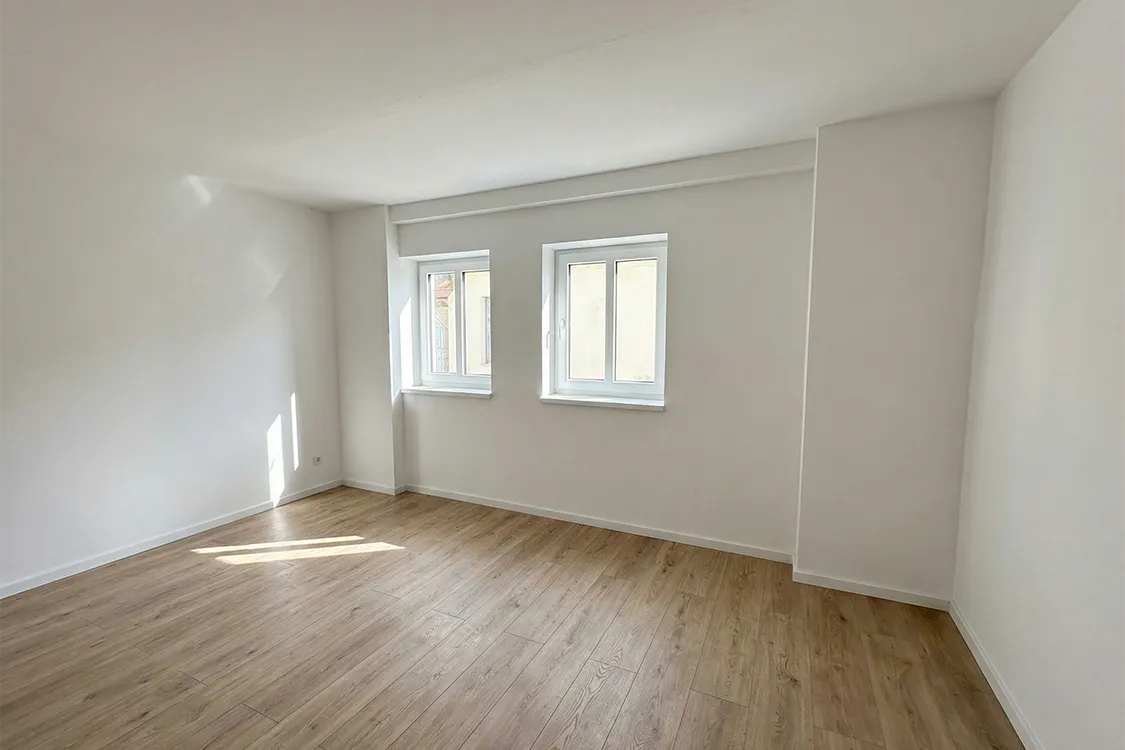 Ložnice je situována v klidnější části bytu a nabízí dostatek soukromí i prostoru pro úložná řešení. Koupelna je navržena prakticky a splňuje požadavky na pohodlný každodenní provoz.