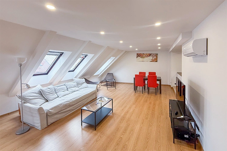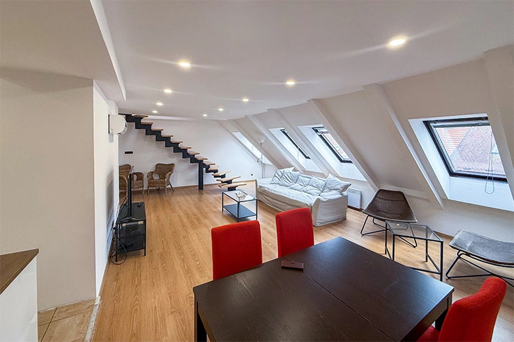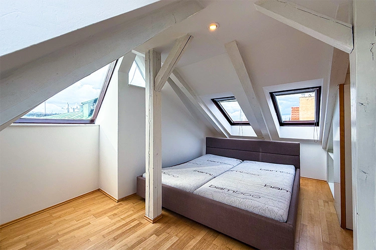 Just a few steps from Karlovo náměstí, in the quiet Navrátilova Street, lies a duplex apartment that perfectly captures the atmosphere of Prague 1. A place where history meets a modern lifestyle. The quiet of a classic townhouse – and yet the vibrant rhythm of the city just outside the window. An apartment with its own story, charm and truly exceptional address.