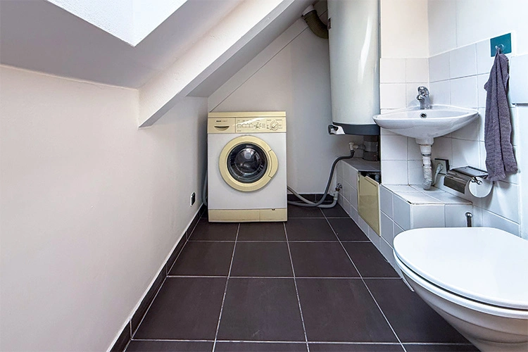 The apartment, with a total area of 106 m², is situated on the top floor of a well-maintained building with an elevator. Its 3+kk duplex layout is divided into two levels. The lower floor feels airy and open – the living area with dining space and kitchen forms the heart of the home. A bathroom with a whirlpool tub, shower and double washbasins will please anyone who values comfort. The upper level opens into a bedroom and study area, including a utility room and second WC. There is air-conditioning throughout the apartment and preserved wooden floors.